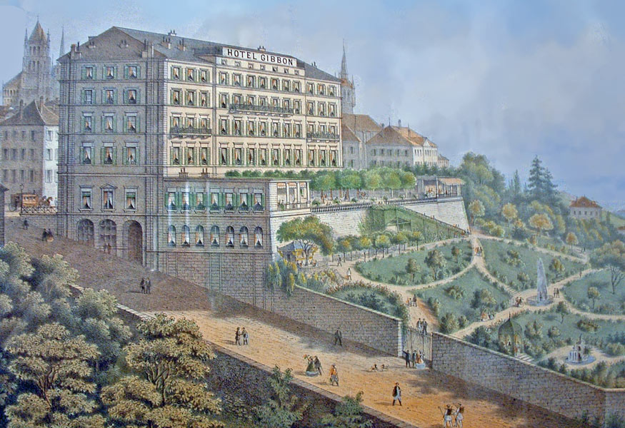 de l'humaniste Edouard Gibbon (1737-1794) qui fit plusieurs longs séjours à Lausanne. L'Hôtel Gibbon