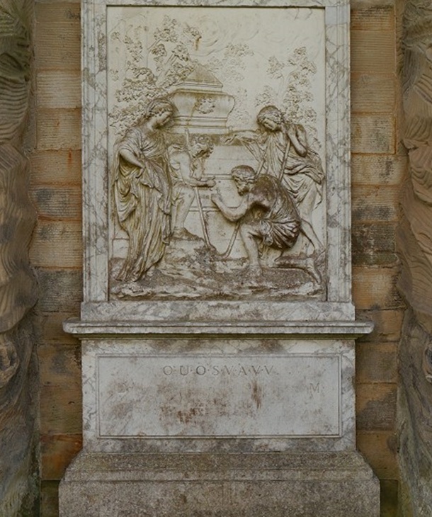Vous y lirez, entre autres, que le relief a été commandé par Thomas Anson (env.1695–1773), député de Lichfield (1747-1770), sculpté par le Hollandais Peter Schneemakers et érigé entre 1748 et 1750. Nous poursuivrons nos investigations et vous remercions d'ores et déjà de votre attention…