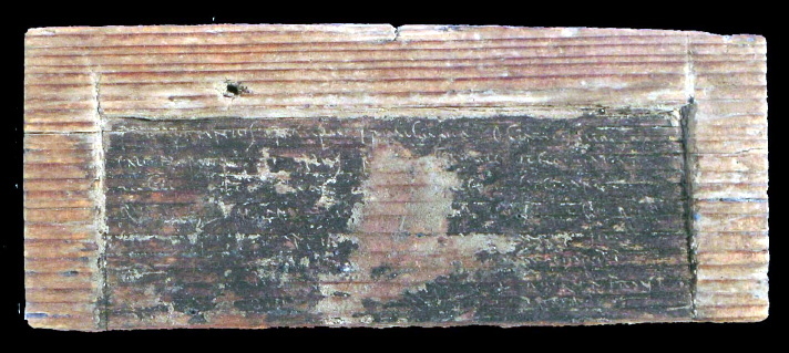 Mon frère était en garnison à Vindonissa (Windisch), et je lui écrivais parfois. Sur la cire de cette tablette, j’ai inscrit au stilet, d’une écriture fine : « Primigenius Camerius salue son frère Primigenius Oclatius. J’espère vraiment que tu te portes bien, moi je vais bien. Je te demande, et je demande aux dieux… ». Le reste est effacé et tant mieux : ça ne vous regarde pas. Lettre de Primigenius Camerius à son frère Primigenius Oclatius Trouvée à Vindonissa (Windisch, Argovie) Bois, 1er siècle Prêt du Vindonissa-Museum, Brugg |