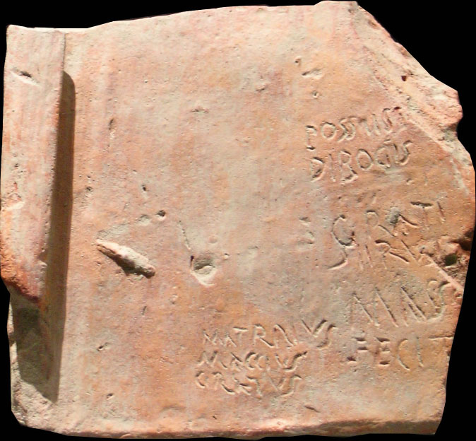 Je m’appelle Masso, et ma vie n’a pas été rose : mon maître me louait au patron d’une tuilerie. Je l’ai d’ailleurs gravé : «Masso, esclave de Gratus, a fait cette tuile dans la manufacture propriété de Dirox». Ailleurs aussi, on sous-traitait la main d’œuvre servile. L’autre tuile a été produite dans l’atelier «de Victor par Erymus, esclave de Paridianus». Graffitis d’esclaves sur tuiles Trouvés à Erlach (Berne) et Wettswil (Zurich) Terre cuite, époque romaine Possessi(one ?) Dirogis Grati serv(u)s Masso fecit Fait par Masso, esclave de Gratus, dans la propriété de Dirox. Victor(…) Paridiani Erymo (…) Fait dans l’atelier de Victor par Erymus, esclave de Paridianus Prêts du Musée national suisse et de la Kantonsarchäologie, Zurich |