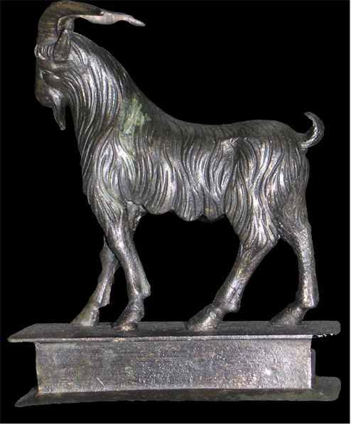 Dans le sanctuaire pas loin d’Eburodunum (Yverdon), moi Iulia Iuliana, j’ai offert à Mercure, pour un vœu qu’il m’a exaucé, cette statuette du bouc qui l’accompagne. Celui qui a gravé ma dédicace sur le socle est d’origine gauloise : il a écrit «au dieu Mercure » DAEO MERCURIO, plutôt que DEO MERCURIO. D’ailleurs, le dieu aussi est un dieu celte indigène, même si on lui donne désormais les traits et le nom de Mercure, son équivalent latin. Statuette votive du bouc de Mercure Trouvée à Ursins (Vaud) Bronze, époque romaine Daeo Mercurio Iul(ia) Iuliana v(otum) s(olvit) l(ibens) m(erito) Au dieu Mercure, de Iulia Iuliana, qui s’est volontiers acquitté de son vœu Prêt du Musée cantonal d’archéologie et d’histoire, Lausanne |